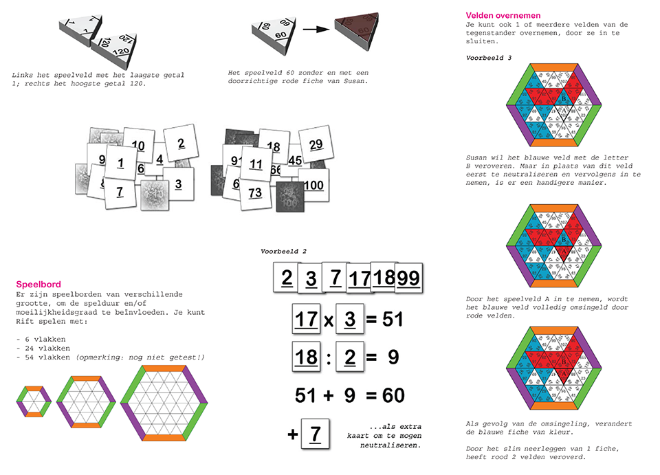 Op basis van een idee van gepensioneerd en gepassioneerd basisschoolonderwijzer Henk Martens ontwikkelde ik het bordspel Rift, waarbij kinderen op speelse wijze oefenen met rekenen. Rift heeft alle kenmerken van een goed bordspel; een gezonde combinatie van strategie, geluk en rekenkunde.